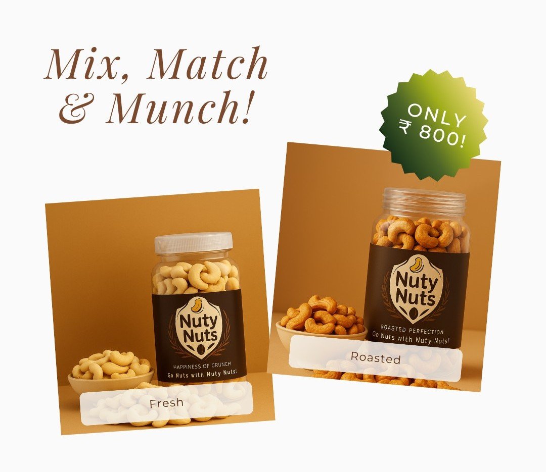 Experience the best of both worlds with our Fresh + Roasted Cashew Combo by Nuty Nuts!