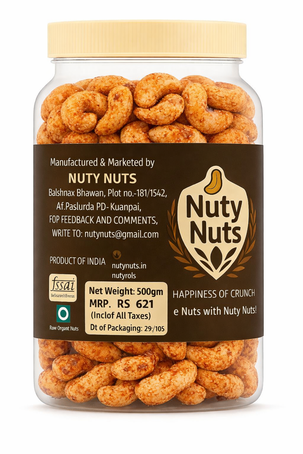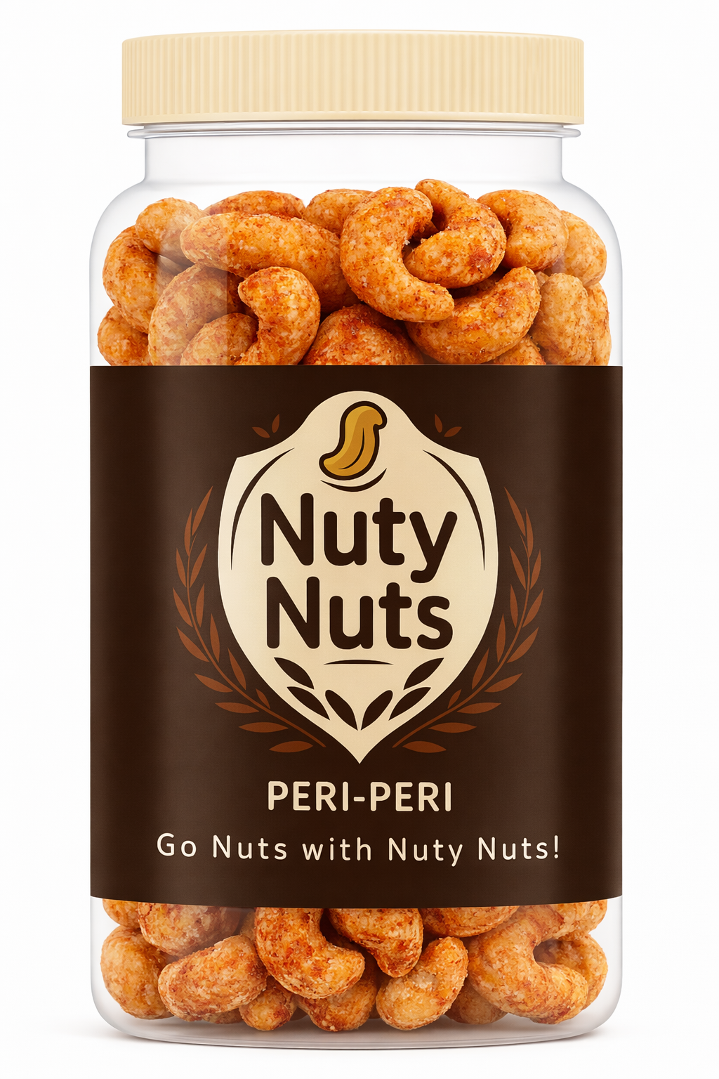 Indulge in the rich, nutty flavor of Nuty Nuts Peri Peri Cashews, perfectly slow-roasted to bring out their natural crunch and golden aroma.