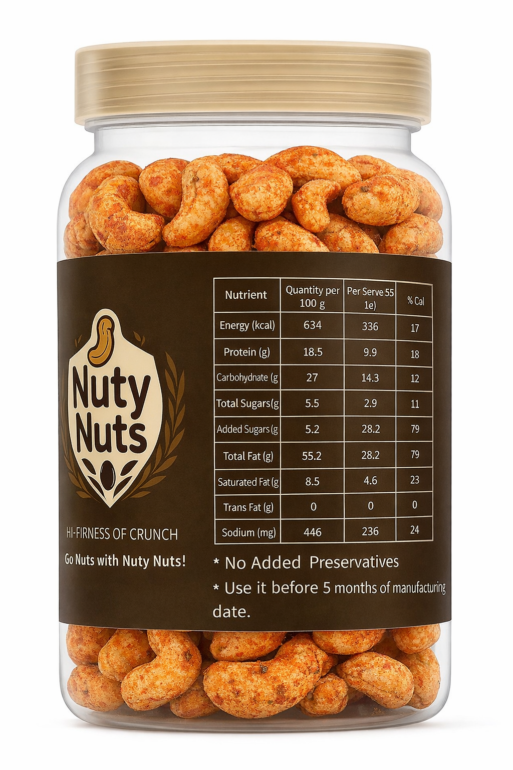 Crunchy premium cashews coated with bold peri peri seasoning for a fiery, tangy, and irresistible snacking experience.